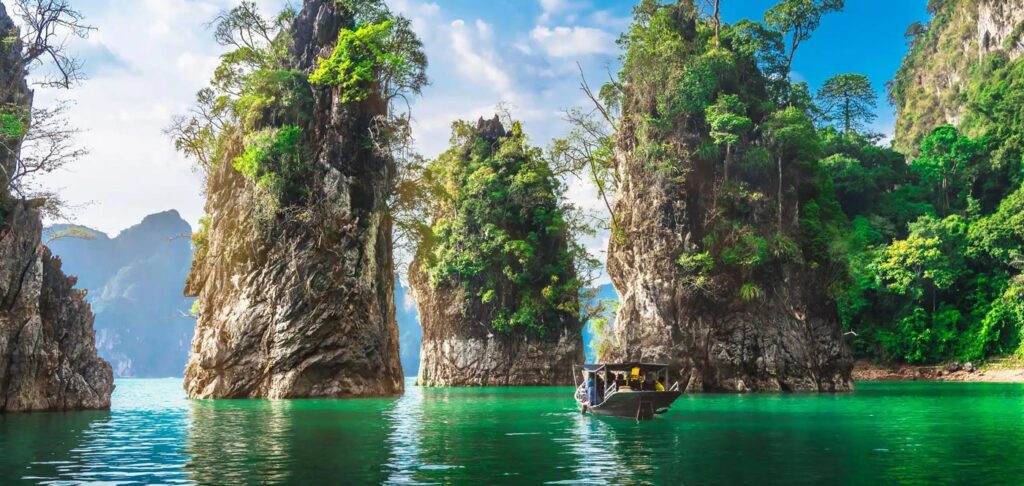 Highlights: Khao Sok National Park is a magical place that feels like stepping back in time. Known for its towering limestone mountains and dense rainforest, it’s one of the oldest rainforests in the world. The main attraction here is Cheow Lan Lake, a serene reservoir with floating bungalows where you can stay overnight. Imagine waking up in a floating bungalow surrounded by emerald waters, lush jungle, and the sounds of nature – an experience you won’t soon forget. Khao Sok is perfect for nature lovers and those seeking adventure, with opportunities for wildlife spotting, trekking, and kayaking.